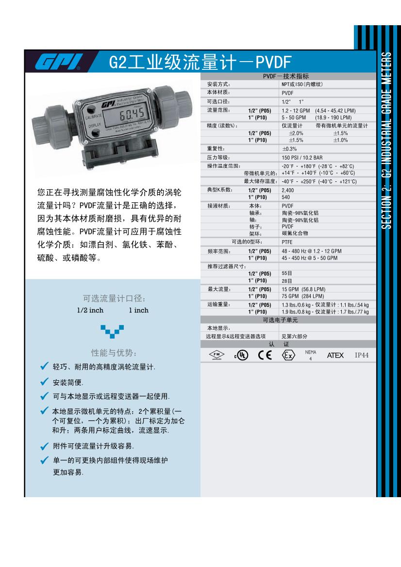 >> G2PVDF流量计